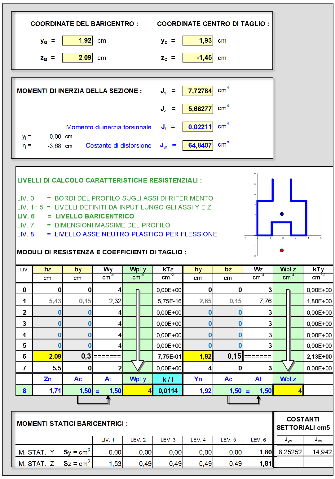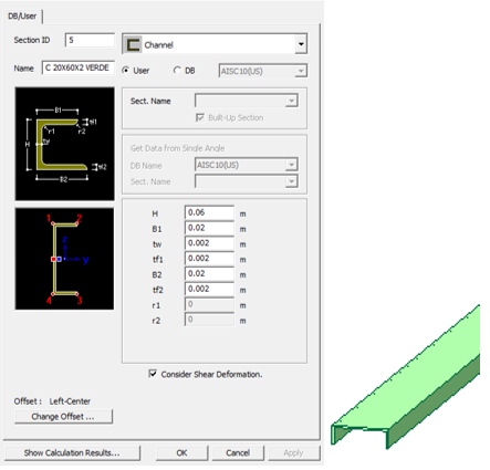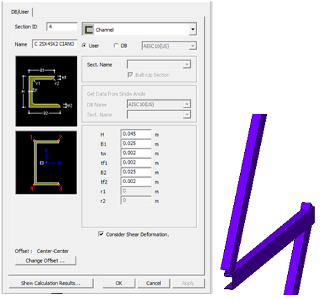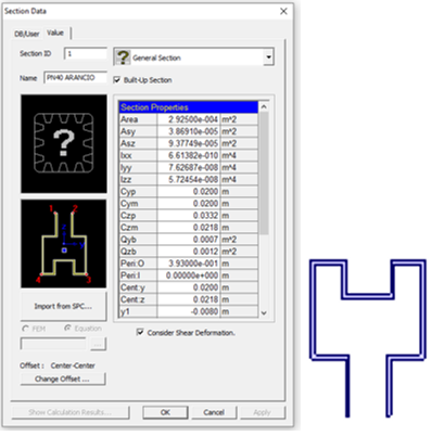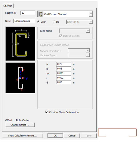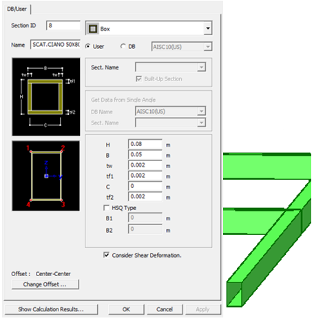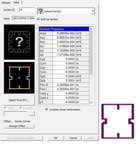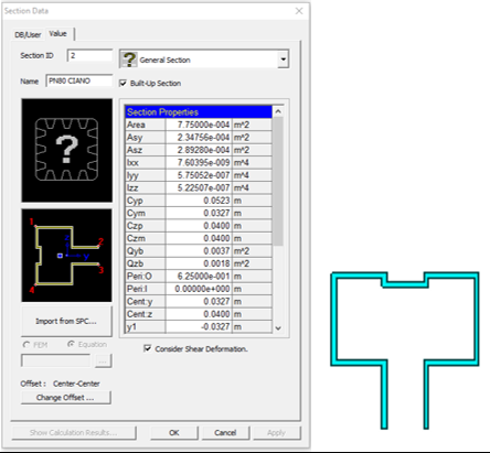 Di seguito si riportano le sezioni immesse nel modello di calcolo (vengono riportate in dettaglio le sezioni creati ad-hoc all’interno di MIDAS/Gen vers.2013: