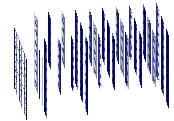 Immagini derivanti dal rilievo geometrico strutturale di alcune campate delle scaffalature metalliche.