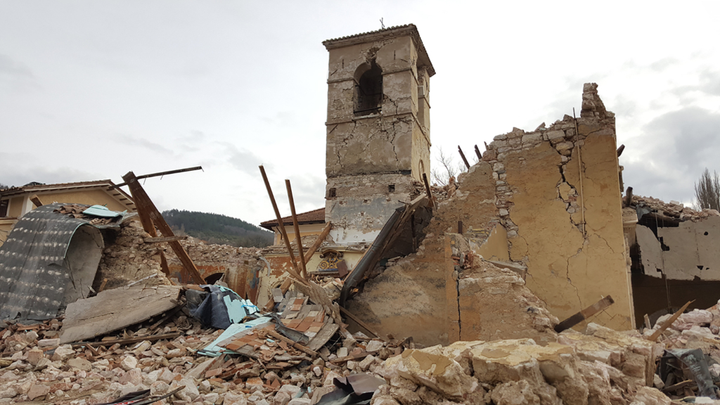 Crollo totale della chiesa di Sant’Antonio a Visso (MC) a seguito del terremoto Centro Italia 2016