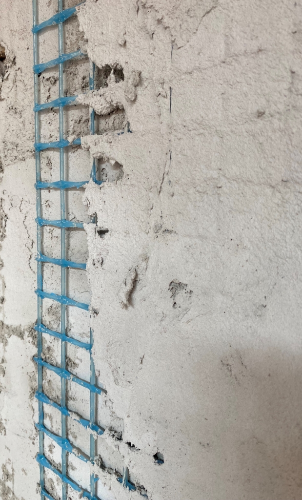 Applicazione della rete e del secondo strato di malta