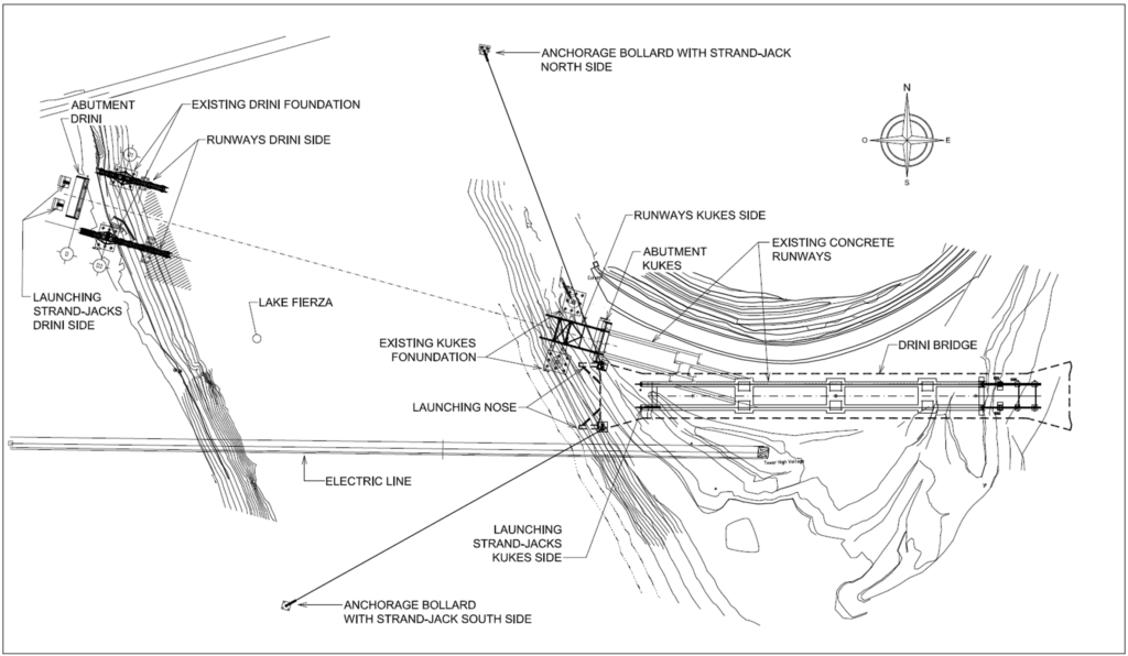 La struttura di acciaio corten di circa 5000t, assemblata dietro alla spalla lato Kukës era stata abbandonata senza possibilità da parte del cliente di richiedere il completamento, per proprio conto, dell’opera per l’insufficienza dei documenti relativi al montaggio, evidentemente mancanti o non consegnati.