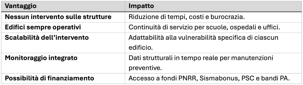 Per la Pubblica Amministrazione, questi vantaggi si traducono in una gestione del rischio più efficiente e in un controllo operativo continuo. Per i progettisti, invece, si aprono nuove prospettive grazie all’integrazione di logiche attive e modelli previsionali dinamici nella progettazione sismica.
